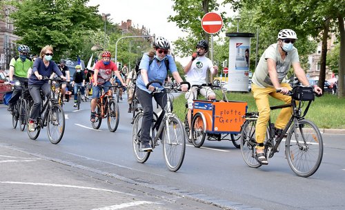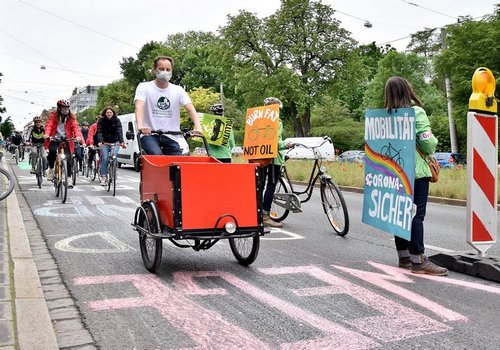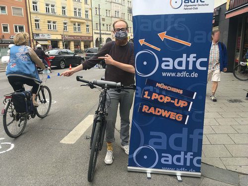Während Busse und Bahnen eher gemieden werden, erfreut sich das Fahrrad als individuelles Alltagsverkehrsmittel in der Corona-Krise noch größerer Beliebtheit als ohnehin schon. Doch Abstand zu halten ist im Rad- und Fußverkehr in vielen Fällen unmöglich. Denn die gegenwärtig sehr vollen Geh- und Radwege sind oft schmaler als der derzeit empfohlene Mindestabstand von 1,50 Metern. Abhilfe schaffen können hier temporär verbreiterte Rad- und Fußwege: Dafür werden bei mehrspurigen Straßen Autospuren in zusätzliche Fahrradspuren umgewandelt oder ausgewählte Fahrbahnen für den Fuß- und Radverkehr geöffnet. Dass das innerhalb kürzester Zeit möglich ist, zeigen Städte wie Wien oder Berlin (de.wikipedia.org/wiki/Pop-up-Radweg). Brief an Bayerns Verkehrsministerin Bereits Ende April wandte sich deshalb der ADFC Bayern zusammen mit dem BUND Naturschutz in Bayern und mit den bayerischen Radentscheiden in einem Brief an Bayerns Verkehrsministerin Kerstin Schreyer. Gemeinsam forderten sie eine schnelle und rechtssichere Einrichtung coronasicherer Fuß- und Radwege. In ihrer Antwort verwies die Ministerin allerdings auf die Zuständigkeit der Kommunen und wandte sich gegen kurzfristige Maßnahmen. Die Vorschläge benötigten zur Umsetzung eine intensive und fundierte Vorbereitung. bayern.adfc.de/neuigkeit/mehr-platz-fuer-rad-und-fussverkehr-waehrend-corona/ Petition gemeinsam mit Partner-Verbänden in Bayern Nun gibt es eine Petition, in der ADFC Bayern, BUND Naturschutz in Bayern und VCD Bayern an die Bürgermeister*innen der bayerischen Groß- und Mittelstädte appellieren, coronasichere Rad- und Gehwege zu ermöglichen. Bitte unterstützen auch Sie unsere Petition! Unterzeichnen Sie unter dem unten angegebenen Link! bayern.adfc.de/neuigkeit/petition-macht-platz-fuer-corona-sichere-rad-und-gehwege Eigene lokale Petitionen Auch vor Ort gibt es teils eigene lokale Petitionen wie etwa für die Städte Fürth und Nürnberg: Zur Petition für Pop-up-Radwege in Fürth Zur Petition für Pop-up-Radweg in Nürnberg Handlungsleitfaden für Kommunen Auf Bundesebene appelliert der ADFC an Städte und Gemeinden, sich jetzt krisenfest aufzustellen und die nachhaltige Mobilität auszubauen und massiv zu fördern. Dazu hat er einen Handlungsleitfaden für Kommunen „Bleibt alles anders: Corona und der (Rad)-Verkehr“ aufgelegt. Dieser steht ebenso wie vier konkrete Maßnahmenpakete auf adfc.de zum Herunterladen bereit: www.adfc.de/artikel/corona-und-der-radverkehr-leitfaden-fuer-kommunen/ |