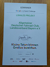 In der Kategorie „Lokale Projekte“ ist der Fahrrad-Club eine von 50 Organisationen, die Fördergelder in Höhe von 20.000 Euro erhalten. „Wir freuen uns riesig über die Finanzspritze und insbesondere über die vielen Stimmen, die unser Projekt bekommen hat“, sagt Landesgeschäftsführerin Petra Husemann-Roew. „Verkehrssicherheit ist und bleibt ein wichtiges Thema, das nicht genug gefördert werden kann. Mit dem Gewinn werden wir das Radverkehrsquiz technisch modernisieren, digitalisieren und um Inhalte für Kinder, Jugendliche und Senioren erweitern. Unser Dank gilt allen, die für unser Projekt gestimmt haben und sich so für mehr Sicherheit im Verkehr einsetzen.“